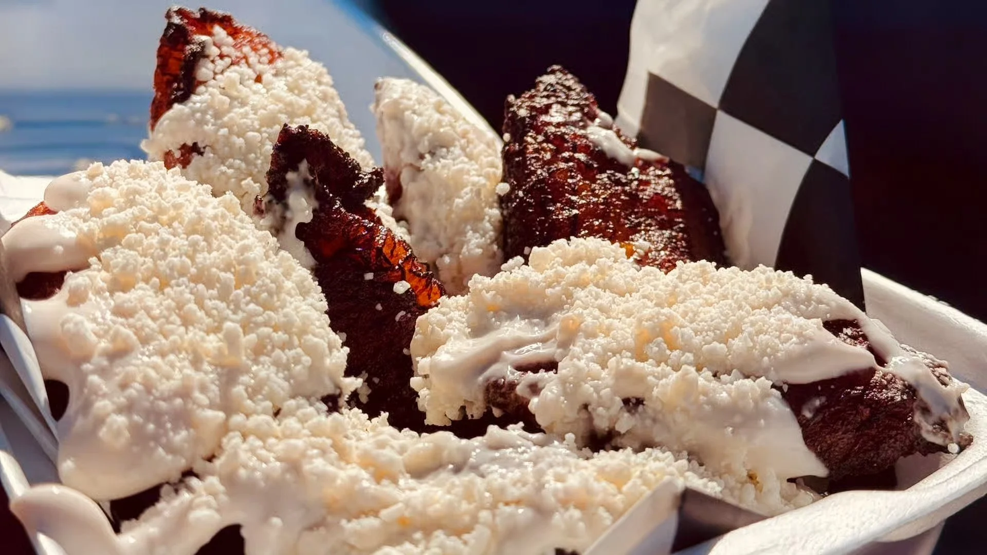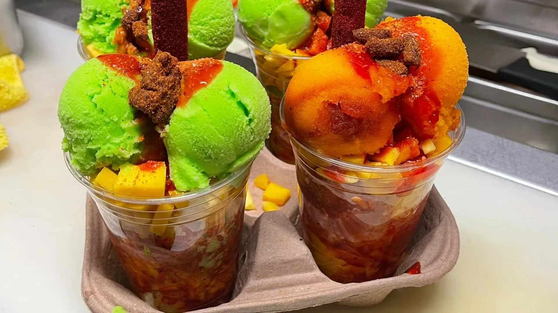 Categories: All Desserts All | Desserts | Banana Split $13.00 Milkshake / Malteada $9.00 Smoothie $9.00 Raspado / Shaved Ice $8.00 Diablito $8.00 Piña Colada $14.00 Piña Loca / Crazy Pineapple $14.00 Quesabirrias $16.00 Pollo con Tajadas $16.00 Tacos $13.00 Pinchos $17.00 Tacos dorados $14.00 Salchipapa Especial $18.00 Burger / Hamburguesa $13.00 Quesadillas $11.00 Latin Hotdog / Perro Caliente $12.00 Salchipapa $11.00 Arepa $11.00 Arepa Dulce $5.00 Empanadas $13.00 Wings / Alitas X6 $13.00 Wings - Franks and Fries / Alitas y Salchipapa $16.00 Just Fries / Papas Fritas $6.00 Shrimp Cocktail / Coctel de Camarón $10.00 Ice Cream Popsicles / Paletas $4.00 Mangonada $13.00 Fruit Cup / Vaso de Fruta $11.00 Choco Banana $3.00 Gaspacho $11.00 Street Corn / Elote preparado $5.00 Fried Plantains / Platanos Fritos $8.00 Tostilocos $11.00 Churros $10.00 Chicharron Preparado $11.00 Aguas Frescas $5.00 Fresas con Crema / Strawberries and Cream $11.00 Esquite $6.00 Fruit Plate / Plato de Fruta $14.00